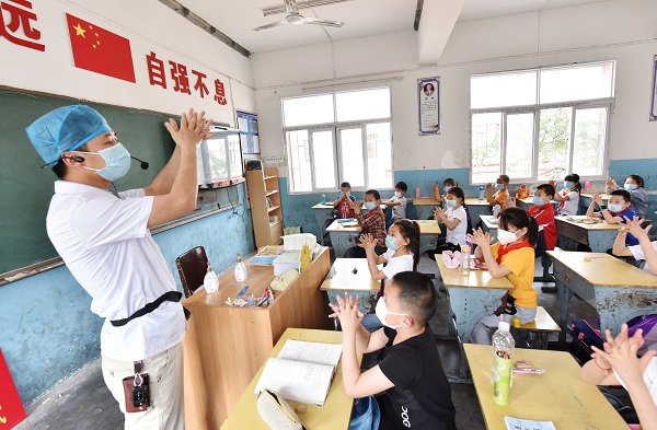 教室里一派热闹的氛围。“我明白了新冠病毒是什么,也学到了正确戴口罩、洗手的方法,我要把这些知识告诉家里的长辈和身边的朋友,让更多的人都健康生活。”胡瑞浠同学说。