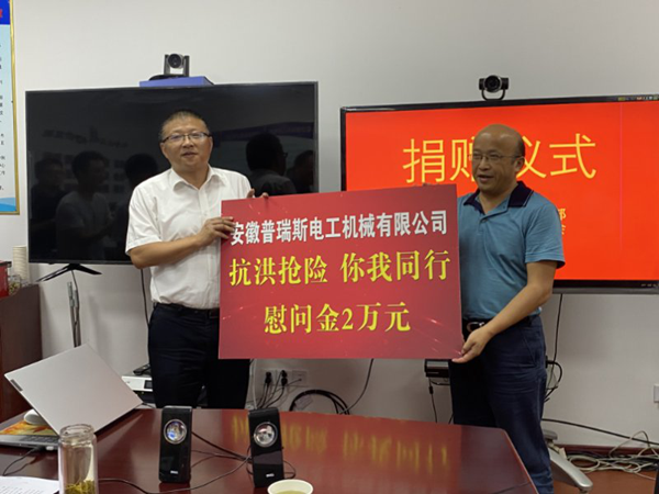 商会理事单位——安徽普瑞斯电工机械有限公司在安庆市启动防汛II级应急响应之际,迅速组建以党员、入党积极分子、民兵预备役骨干为主体的防汛应急救援突击队在迎江区新洲乡永存村担负巡查、加固圩堤突击任务。同时,公司党支部书记、总经理张清富前往迎江区长风乡将军村防汛值守点捐赠防汛物资并向迎江区工业发展促进会捐赠现金1.2万元。