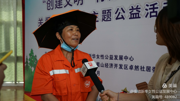 安徽新华女性公益发展中心理事长上台致辞。她说9月5日是全国第五个“中华慈善日”。关爱环卫工人主题公益活动今天已举办第二场,从身边的“小善”做起。仁者爱人,乐善好施中华民族历久弥香的慈善文化,从来不乏闪耀的思想与慷慨的给予;这个世界的每个角落、每时每刻都发生正能量的故事;而大爱,正是由各种无微不至、无处不在经年累月的小爱累积而成的;愿向善的力量照亮众人。愿公益的爱心为“城市美容师”带去生活与工作的力量,也送去高温下最舒适的清凉。