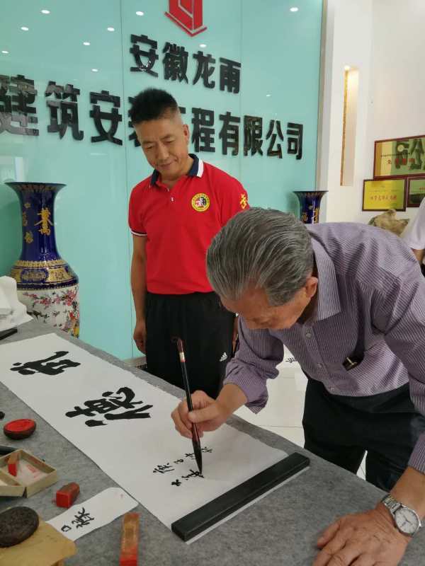 活动现场, 中国书法家协会会员、安徽省老年书画院副院长郭大华挥毫泼墨,题写“共筑中国梦”等多幅书法作品, 表达对伟大祖国繁荣富强的美好祝福。