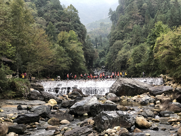 孩子们在池州市石台县牯牛降感受皖南的绿水青山