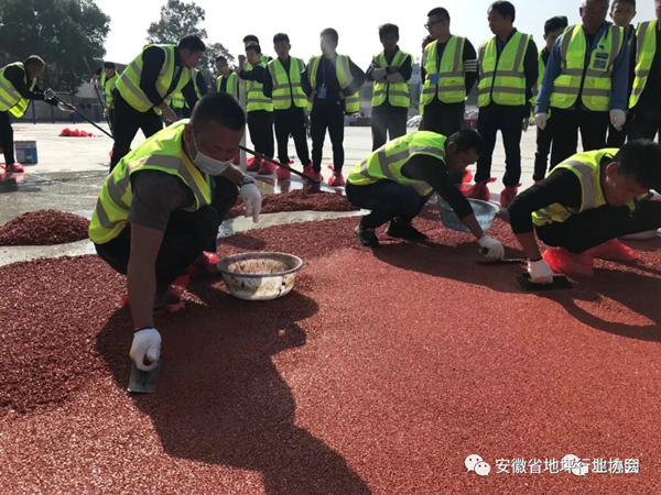 培训会上,安徽省地坪行业协会体育设施专业委员会李之泉主任表示:匠心,是职业能力,是职业道德,是职业品质,更是自我修行。尊重匠人、尊重匠心,就是尊重劳动、尊重创造、尊重良心。运动地材行业要从‘毒跑道’事件中走出来,必须依赖具有匠心的匠人,才能在新产品、新标准、新监管的协同下,打造一个又一个的绿色环保工程、优质良心工程。当前,社会上很关心塑胶跑道是否环保,关心的是它的化学性能,却忽略了它的物理性能。李之泉认为,如果跑道等运动场地的垂直变形、冲击吸收这些物理性能不达标的话,对运动者的关节、脚踝等起不到有效的保护,会造成更多伤害。开展运动场地设施铺装工职业技能培训班,就是要从思想上提高铺装师傅的认识,引导他们把运动场地铺装好,让运动者能在合格的场地上快乐奔跑。