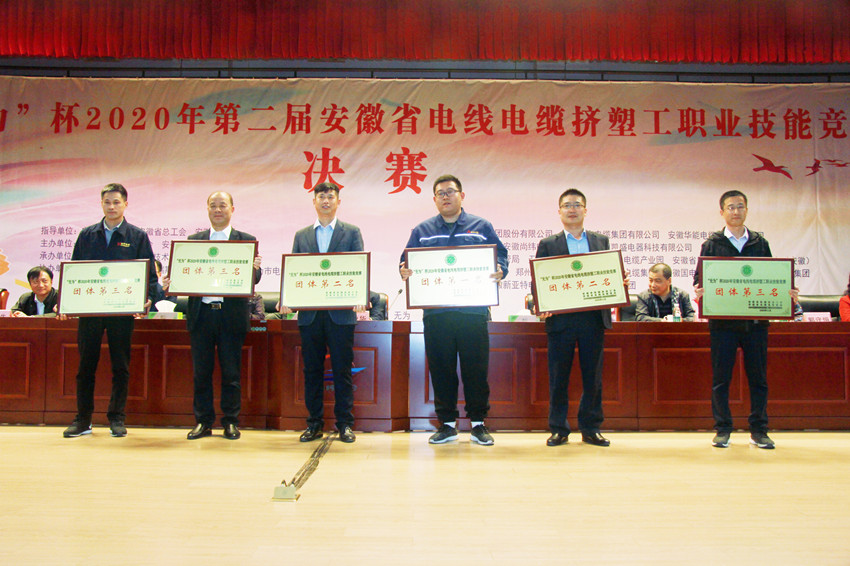 安徽华能电缆集团有限公司荣获团体总分第一名;安徽华菱电缆集团有限公司、安徽太平洋电缆股份有限公司荣获团体总分第二名;安徽天康(集团)股份有限公司、安徽华宇电缆集团有限公司和安徽徽宁电器仪表集团有限公司荣获团体总分第三名。