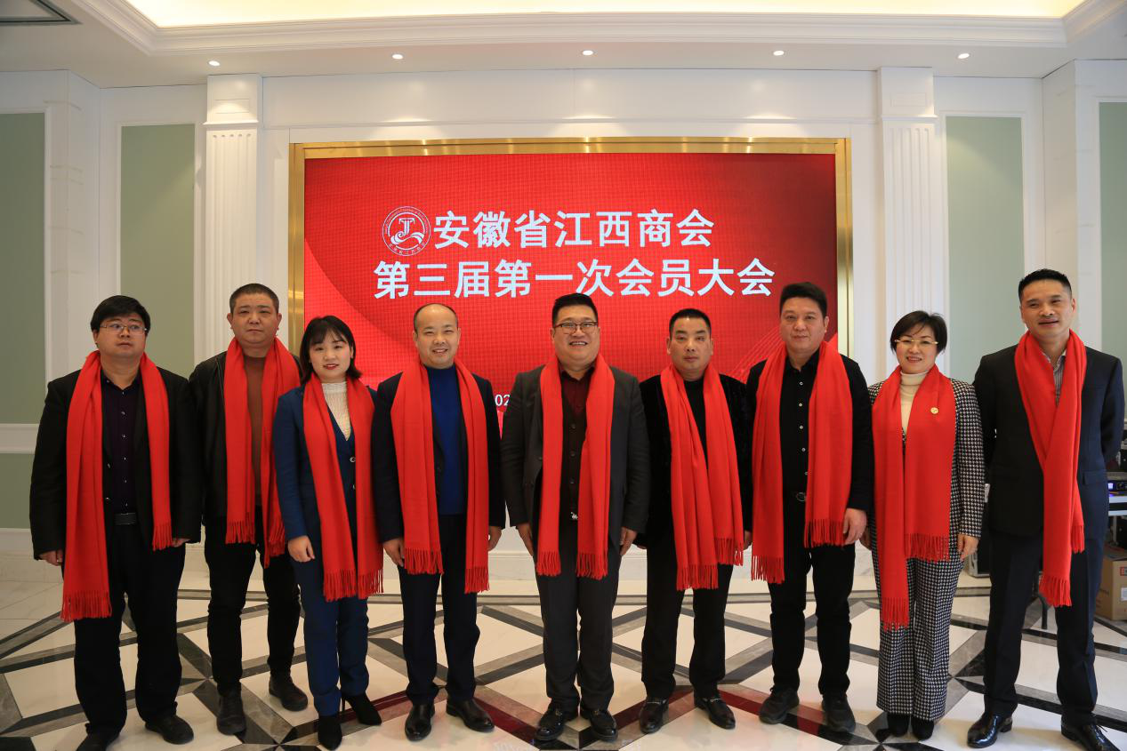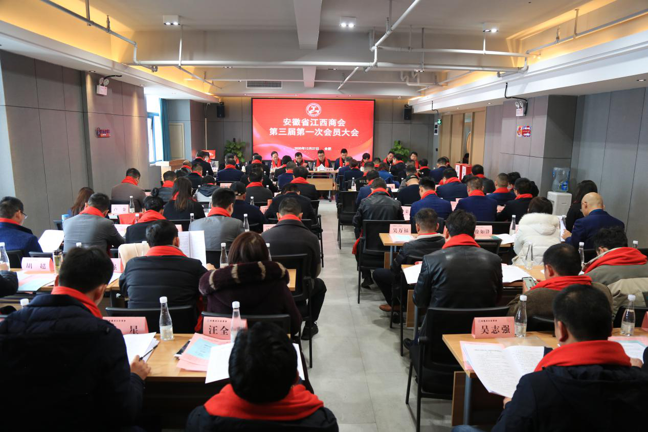2020年12月27日上午,安徽省江西商会第三届一次会员大会暨三届一次理事会在合肥华尔顿酒店隆重召开。出席会议的有安徽省社会组织管理局科长冯斌、安徽省合作交流办经济联络处主任李兵;商会第一届理事会会长王瑞华、第二届理事会会长张凤兰;商会党支部书记杨建田,以及商会会员代表。