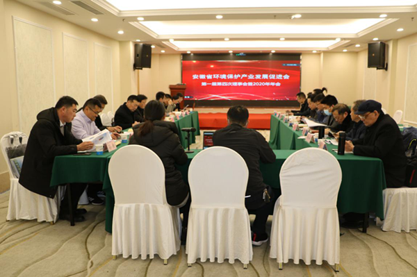 滴水成冰寒彻骨,皖军云聚布新篇。为推动安徽环保产业高质量发展,充分发挥行业协会自律引导作用,安徽省环境保护产业发展促进会第一届第四次理事会暨2020年年会于1月8日下午召开,根据合肥市防疫指挥部要求,以线上视频会议形式在合肥市蜀山国际大酒店成功举办。在肥副会长单位及线上线下近200名会员代表云聚一堂,回眸梳理总结硕果累累的2020,共商业界2021发展大计。原省环保厅万静巡视员、省经信厅节能处罗国平副处长等有关领导到会指导。