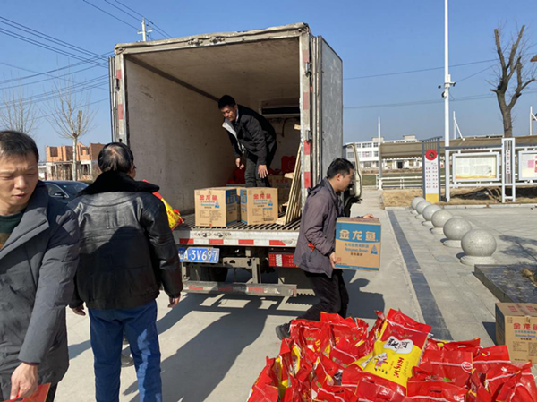 活动中,爱心企业芜湖欧宝机电有限公司出资购买了一万余元的大米、食用油、银耳、大枣、粉丝、燕麦等生活食用品,在村部广场将爱心物资发放至张国和、贾明清等五保户群众手中。“支持协会做好帮扶工作,是我们企业应尽的社会责任,感谢协会能有这样的机会让我们参与进来,我们企业还可以给村里的劳动力提供就业岗位。”欧宝机电科创主管韩庆银说。