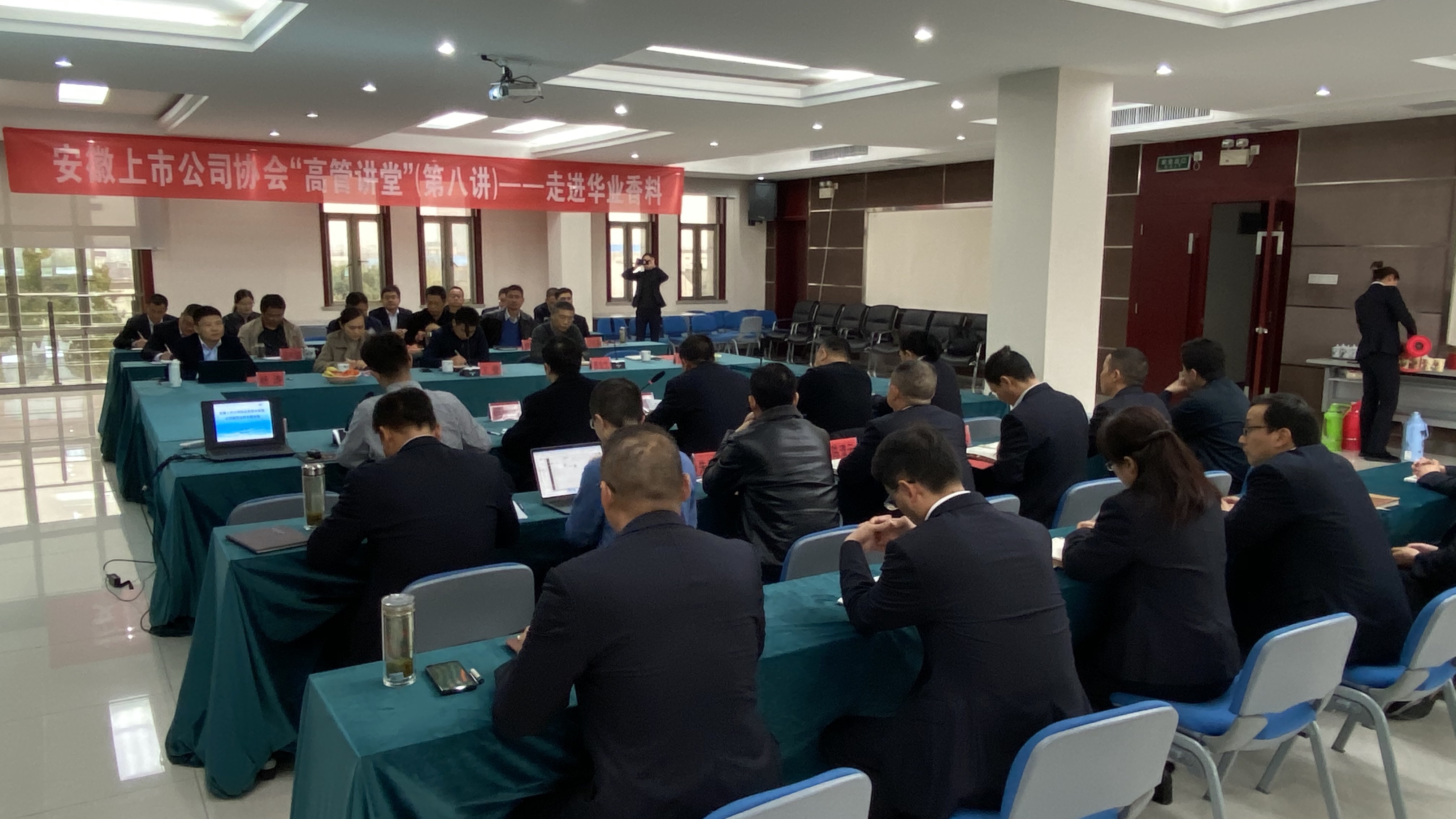 3月5日,安徽上市公司协会“高管讲堂”第八讲走进华业香料。公司全体董事、监事及公司高管、重要子公司负责人等30余人参加培训。华业香料董事长华文亮、总经理徐基平、安徽证监局公司处副处长王登、我会副会长兼秘书长袁宏生等出席活动。