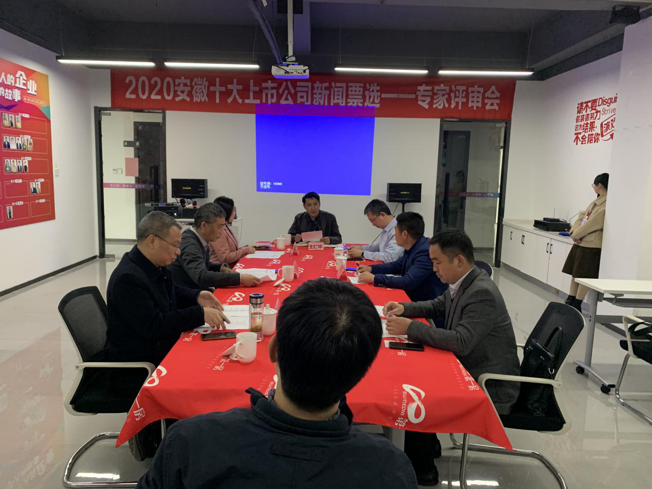 2月23日,安徽上市公司协会在合肥召开“2020安徽十大上市公司新闻”专家评审会。5位评委分别来自监管部门、上市公司和高校,现场评审流程由本次活动协办单位环球老虎财经安徽总经理王仁华主持,上市公司协会副会长兼秘书长袁宏生出席会议。