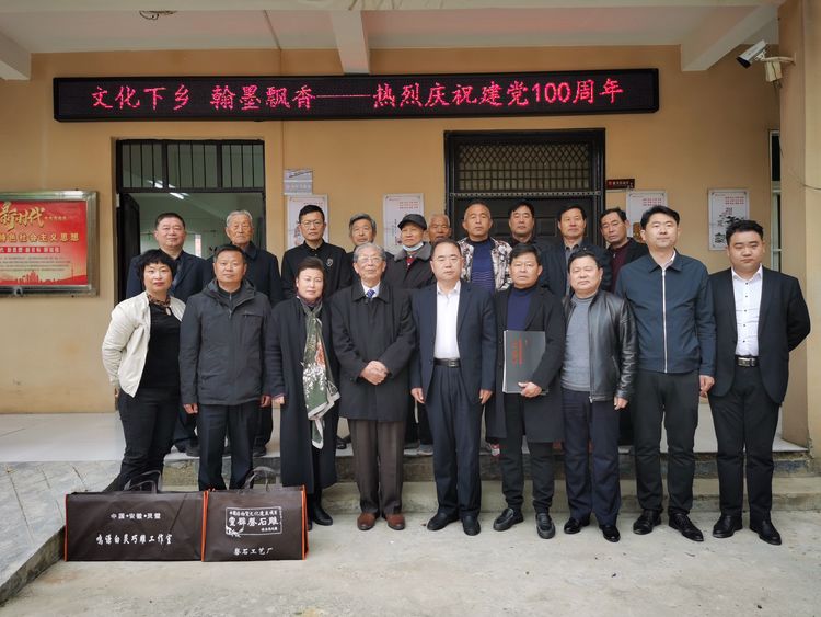 文化下乡,翰墨飘香。2021年4月11日, 安徽省灵璧石协会赴宿州市??徘?Ш酉缱橹??刮幕?孪缁疃??/span>安徽省灵璧石协会会长黄国强,秘书长叶长春,支河乡党委书记武德志,支河乡党委副书记、乡长钮宏利等人出席活动。