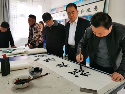 活动现场, 宿州市著名书画家郭大华、李胜春、赵松岩、张朝中等人创作多幅书画作品,安徽省灵璧石协会副秘书长、安徽省磬石文化产业有限公司总经理黄璜向支河乡政府文化站赠送灵璧石磬石琴、文房四宝等文化用品,表达对支河乡人民美好生活的祝福。