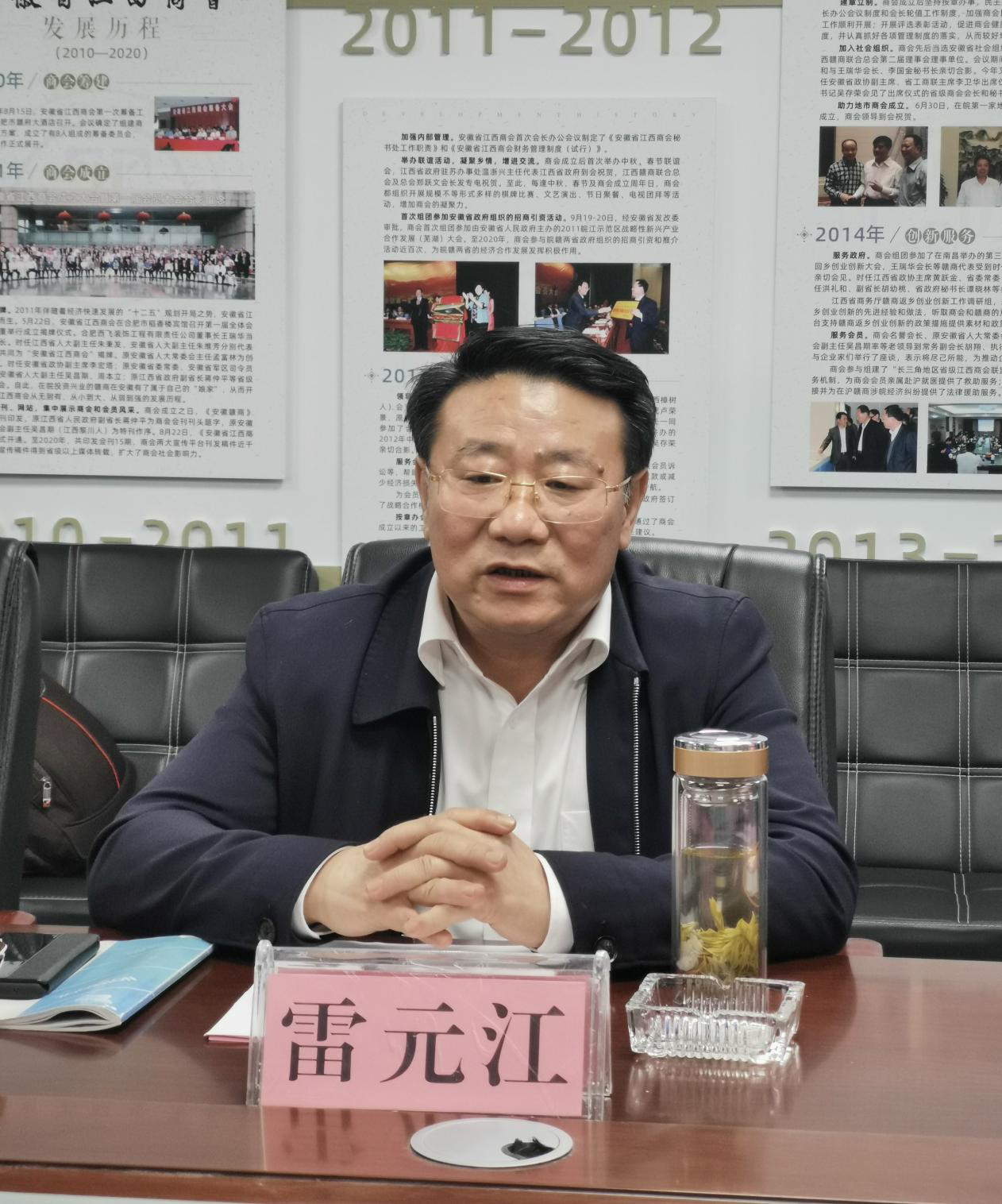 江西省政协副主席、省工商联主席雷元江表示,这次和李文强秘书长带领各个处室负责人来安徽,是向安徽省工商联学习先进工作经验和做法,同时来安徽省江西商会看望大家,在座的各位都是商界的精英,大家在异地发展不容易。刚才听了杨会长对商会成立以来工作情况介绍,也听取了几位企业家的企业介绍,很是欣慰。他指出:第一,商会的工作做得很到位,能够按照商会的章程,在安徽省工商联的指导下,能把赣商紧密的团结在一起,共同的为地方政府的事业,企业家的事业,江西家乡的事业,做出了重要的贡献。第二,听了大家的发言,认为安徽的赣商企业家素质、情怀都非常好。他对五位企业家代表的创业经历和事业成功表示充分肯定,认为体现了赣商敢打敢拼,厚德实干、义利天下的精神。第三,安徽与江西地理、文化相近,近十年发展很好,营商环境好,在皖赣商发展良好。他对在皖赣商继承弘扬江西商帮精神,弘扬“厚德实干、义利天下”的赣商精神,为赣皖两地做出贡献表示衷心感谢。