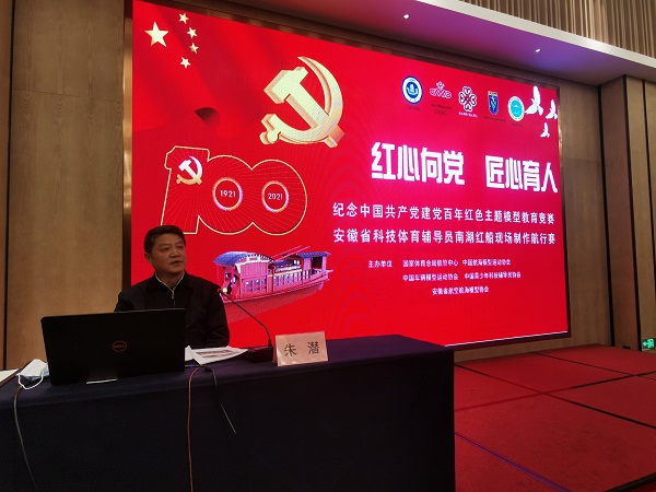 在启动仪式上,省航协主席、安徽省委组织部原部务委员朱潜同志以“学党史不忘初心,红船精神代代传!”为题,为参会的全省科技体育辅导员上了一次生动的党史教育党课;省航协副秘书长王祖春老师为全体科技体育辅导员介绍“红心向党 匠心育人”纪念中国共产党建党百年红色主题系列模型教育竞赛活动的内容。