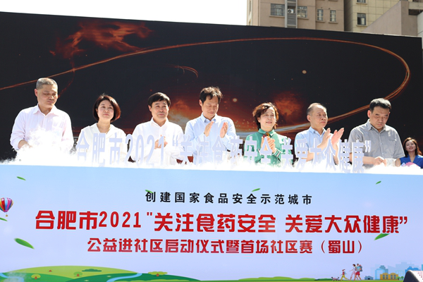 5月8日下午,合肥市2021年“关注食药安全·关爱大众健康”公益进社区活动在蜀山区五里墩街道新时代文明实践中心拉开序幕。合肥市市场监管局党组书记、局长陈明出席启动仪式并致辞,合肥广播电视台台长、合肥文广集团董事长朱煜,安徽省药品零售行业协会会长周双才出席启动仪式,部分县区市场监管工作人员、食品及药品企业代表、群众等400 余人参加活动。