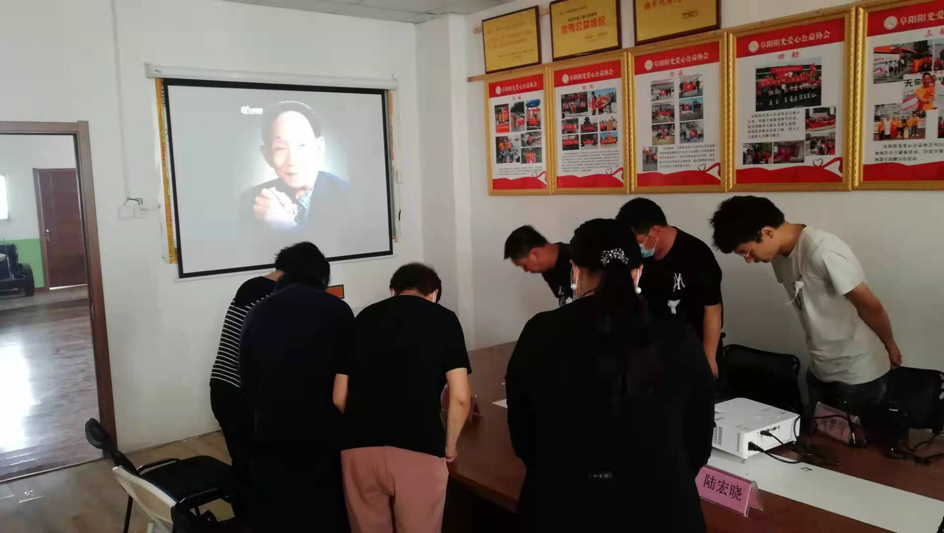 5月24日,阜阳阳光爱心公益协会组织志愿者代表集体收看袁隆平院士追悼会现场直播,对袁隆平院士的逝世表示最沉痛的哀悼,在哀乐声中向袁隆平遗像前肃立默哀,并三鞠躬。