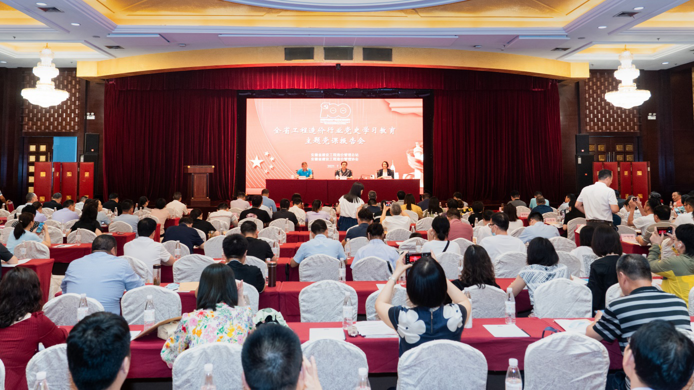 值此中国共产党成立100周年之际,7月2日,省造价管理总站与省造价管理协会在合肥共同举办全省工程造价行业党史学习教育主题党课报告会,重温党的百年伟大奋斗历程,共同庆祝党的百年华诞。省造价管理总站江锡虎站长、省造价管理协会王成球理事长、省协会各位副理事长、部分市站站长、各市协会负责人及省内造价咨询企业的党组织负责人等共240多人参加了会议。会议由王成球理事长主持。