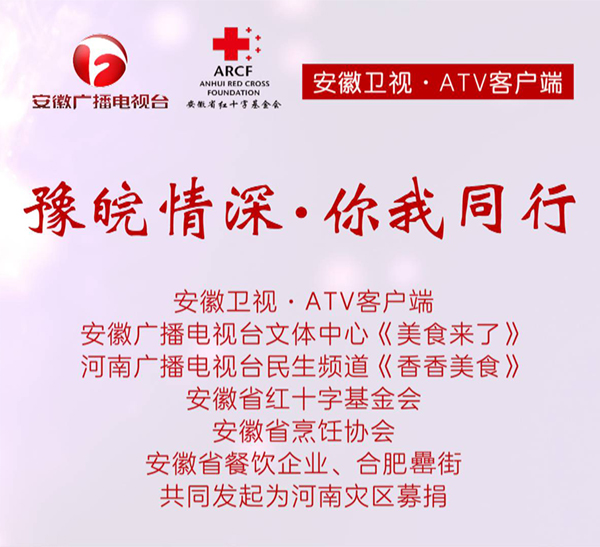 连日来,河南多地持续遭遇强降雨,城市发生严重内涝,造成重大人员伤亡和财产损失,为支持灾区做好防汛救灾和灾后重建工作,安徽卫视APP、安徽省红十字基金会、安徽省广播电视台文体中心《美食来了》、河南广播电视台民生频道《香香美食》、安徽省烹饪协会联合安徽餐饮企业、合肥?街,共同举办了此次“豫皖情深 你我同行” 支援河南灾区赈灾募捐活动。