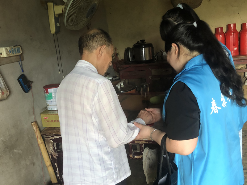 近日,安庆市春霖社会工作服务中心社工顶着烈日、跋山涉水深入庐江县柯坦、乐桥两镇开展“幸福上门 耆乐融融”生活不能自理的散居特困人员关爱行动,春霖社工工作人员走村入户,上门倾听失能半失能服务对象的需求,广泛宣传社会救助政策,了解服务对象的生活情况,为下一步广泛链接社会资源,扎实开展社会救助服务关爱行动,帮助服务对象解决生活难题。