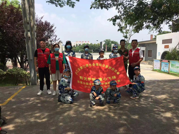 庐江县阳光公益协会的“阳光护航.童心飞扬”的创投项目通过个案、小组等为针对庐城镇3个社区的二十名特殊家庭的孩子特别制定“一对一”结对帮扶活动,为孩子们设计了丰富多彩的志愿服务。图为在庐城镇塔山社区工作人员的带领下,邀请社区正常家庭的孩子与帮扶对象一起举办了一场别开生面的真人CS游戏。