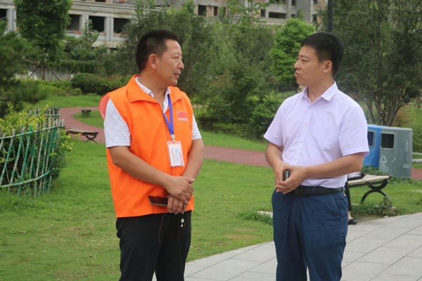 阜阳市民政局慈善社工科科长、阜阳市慈善总会秘书长李子群(右)莅临现场指导。