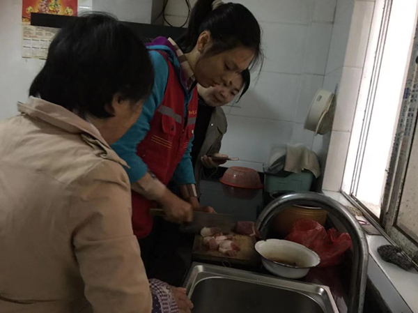 庐江县阳光公益协会的志愿者来到方店社区和泥河社区,为社区的孤寡老人现场烧制爱心午餐。
