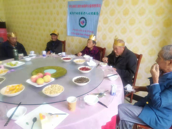 庐江县心理咨询师协会“暖阳行动”公益创投项目志愿者,来到罗埠村为五位散居特困老人举办集体生日,让他们感受到节日的快乐和社会的关怀。