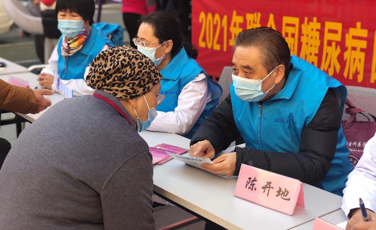 中国糖尿病的患病率居高不下,并有年轻化的趋势,且患者血糖控制达标率不理想。因此,提高对糖尿病的认识、改善健康管理刻不容缓。上午8时许,在活动现场,义诊人员通过设立咨询问诊台、悬挂醒目宣传标语、发放宣传资料等形式向广大市民普及糖尿病相关知识,耐心为患者答疑解惑,为每一位前来咨询的居民进行登记,免费检测血糖、血压、尿微量白蛋白,普及健康生活知识,指导糖尿病人群的饮食、运动、胰岛素注射及日常注意事项。活动吸引了许多市民和糖尿病患者,让民众在家门口就可以享受到三甲医院优质的医疗服务。在义诊中发现疑似糖尿病16人、疑似低血糖5人、疑似高血压11人,均建议到医院进一步检查。学会副理事长兼秘书长陈开地为到场群众解答咨询。
