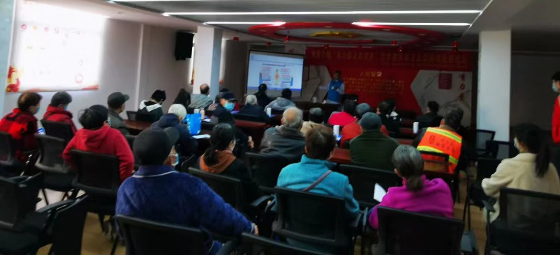 金国玺教授在义诊期间还为社区居民、糖尿病患者开展了一场糖尿病综合管理科普宣传讲座,分别对糖尿病饮食、运动、血糖监测、药物管理、并发症防治、血糖控制目标等相关知识进行普及。内容通俗易懂,不仅让居民能够正确认识糖尿病并积极治疗,同时也为医患沟通创建了一个良好互动的平台。