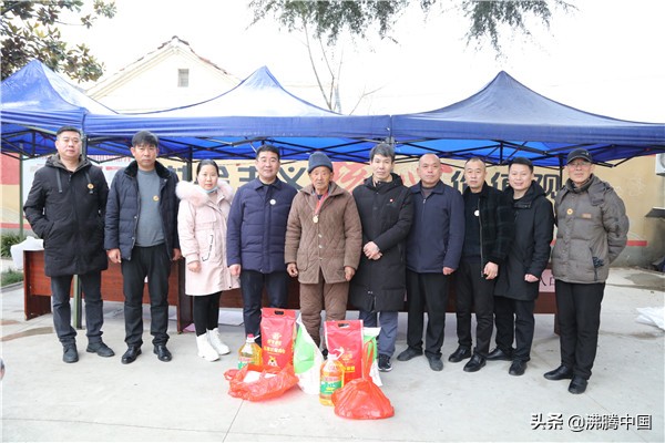 春节将至,安徽省阜阳市颍州区民政局携手阜阳市颍州区雨露公益志愿者协会、安徽顶顺电梯工程有限公司志愿者冒雨驱车来到利辛县汝集镇秦四庙村慰问特困群众、特困党员、抗美援朝老兵。