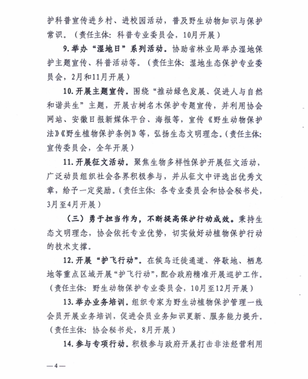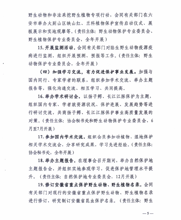 安徽省野生动植物保护协会2022年度工作方案