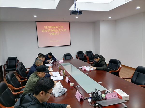宿州银保监分局银协保协联合党支部于2月28日召开改进工作作风专题会议,支部全体党员和保协秘书处全体员工参加会议。分局党委委员、副局长陈旭华参加会议并讲话。