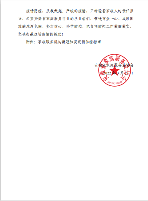 安徽省家庭服务业协会关于做好当前疫情防控工作的倡议要求