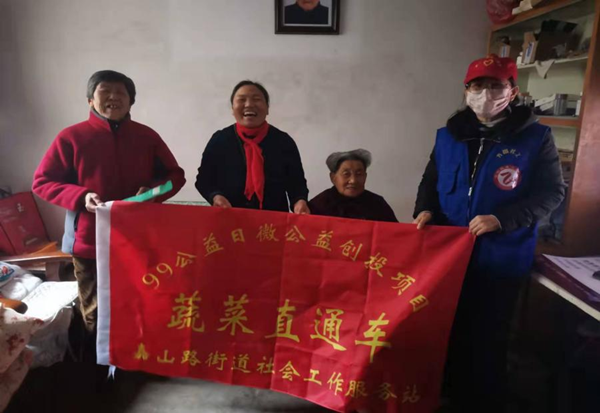 瑶海区:瑶海区社工们在做好疫情防控工作的同时,始终不忘关心、关爱独居老人的生活。3月17日下午,嘉山路街道社会工作服务站微公益创投项目“蔬菜直通车”志愿队在嘉山路街道辖区开展“疫情期间,温暖相伴”关爱独居老人活动,为老人送去防疫用品。
