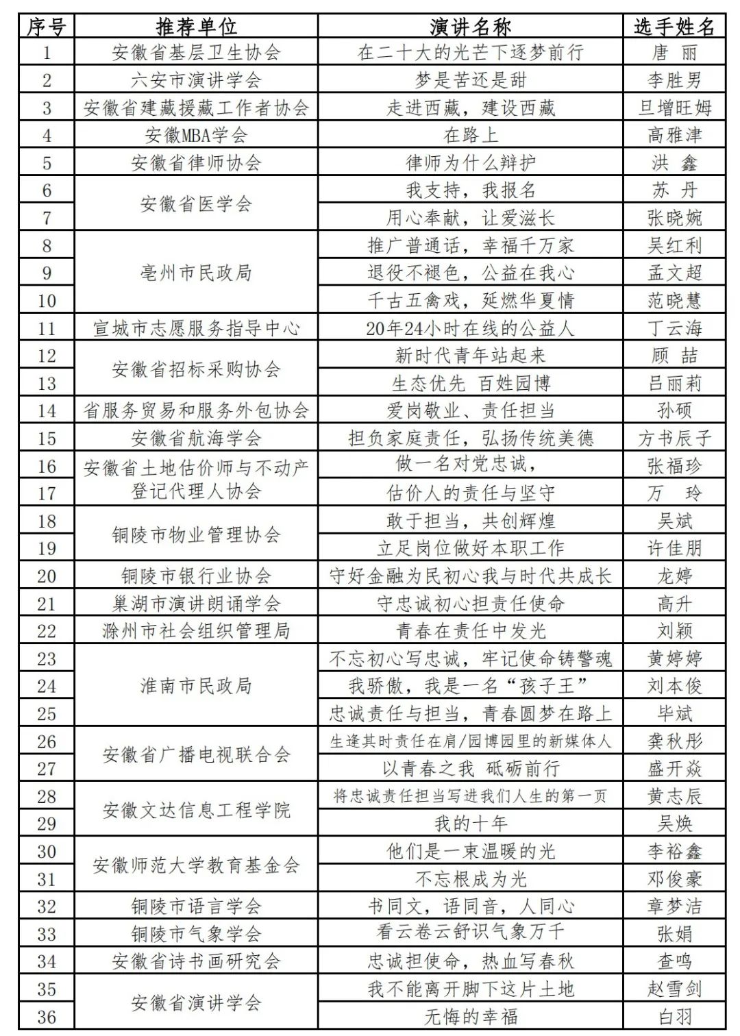 现将进入复赛的36位选手及演讲稿名称公布如下: