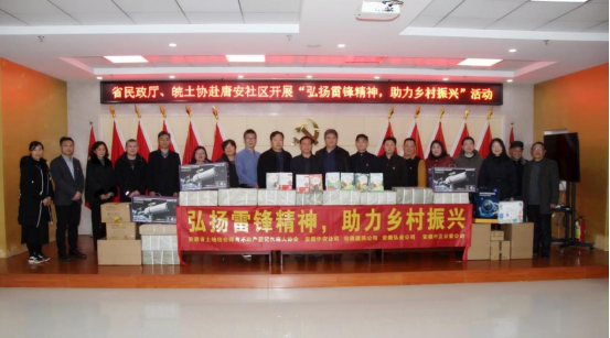 三月春风处处暖,雷锋精神代代传。为认真贯彻落实习近平新时代中国特色社会主义思想主题教育,弘扬全心全意为人民服务的雷锋精神,传承助人为乐的中华美德,助力乡村振兴,2024年3月4日,在第61个学雷锋纪念日到来之际,安徽省土地估价师与不动产登记代理人协会党支部联合安徽中安房地产评估咨询有限公司、安徽建英房地产土地资产评估有限公司、安徽弘业房地产土地资产评估有限公司、安徽中立公鉴房地产资产造价评估有限公司一行到协会助力乡村振兴帮扶点——肥东县撮镇镇唐安社区开展“弘扬雷锋精神,助力乡村振兴”主题党日活动。本次活动以座谈和实地走访相结合的方式开展。安徽省民政厅机关党委专职副书记一级调研员阚家安一行出席活动,撮镇镇和唐安社区主要负责同志以及协会会长蒋雪松一行参加活动。