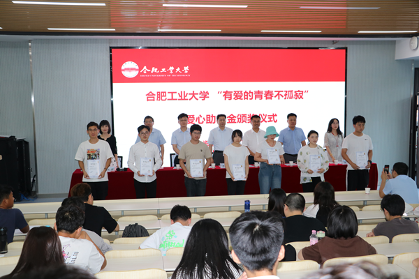 满园芳菲妍正丽,斛兵塘畔炫青春。5月24日下午,由安徽省环境保护产业发展促进会发起的第三届“有爱的青春不孤寂”爱心助学捐赠颁发仪式在合肥工业大学(屯溪路校区)资环学院报告厅举行,资环学院党委书记李强,安徽环保产业发展促进会常务副会长兼秘书长张登亮,同兴环保、威达环保、元琛科技三家爱心企业代表,合工大25名受助学子及数十名毕业生到会参加上述活动。