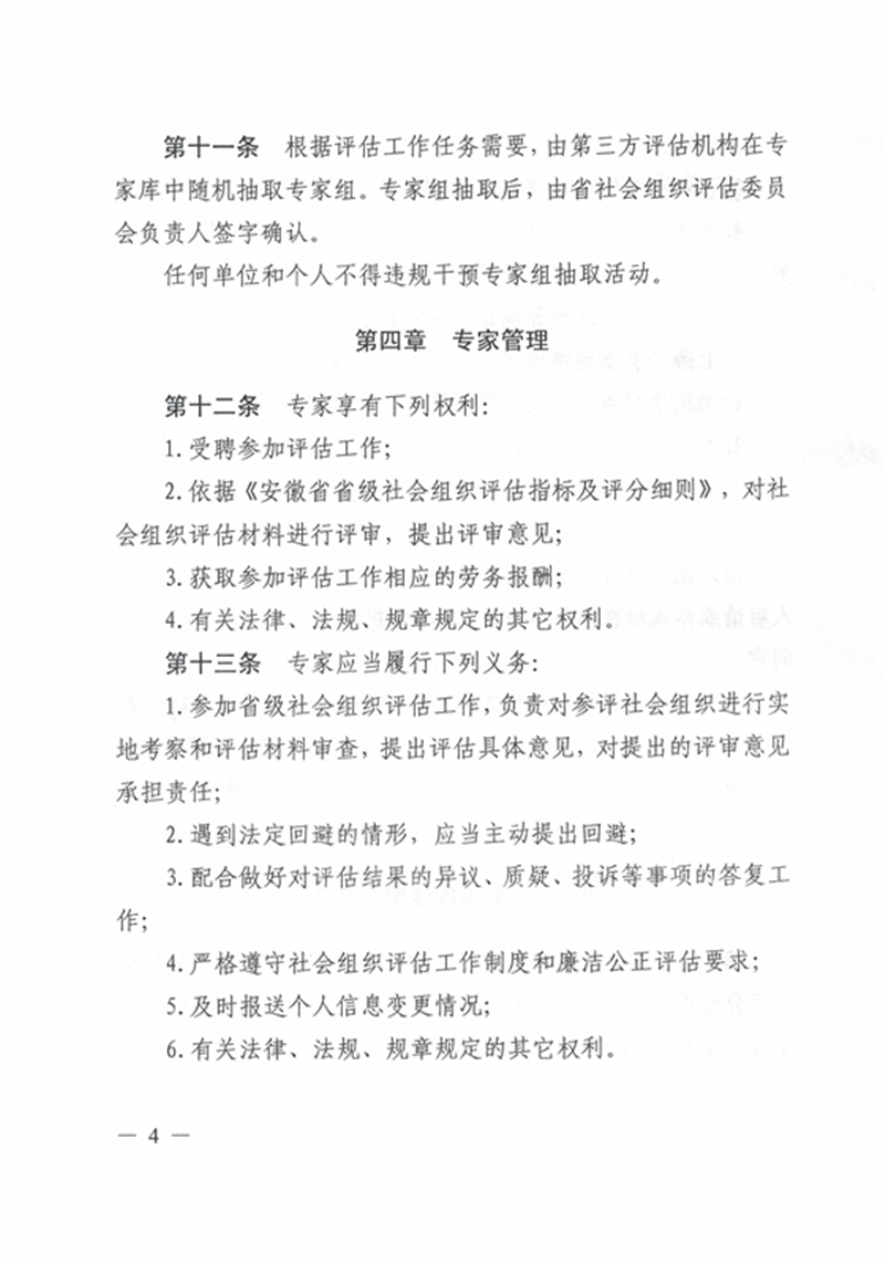 关于印发《安徽省省级社会组织评估专家库管理规定》的通知
